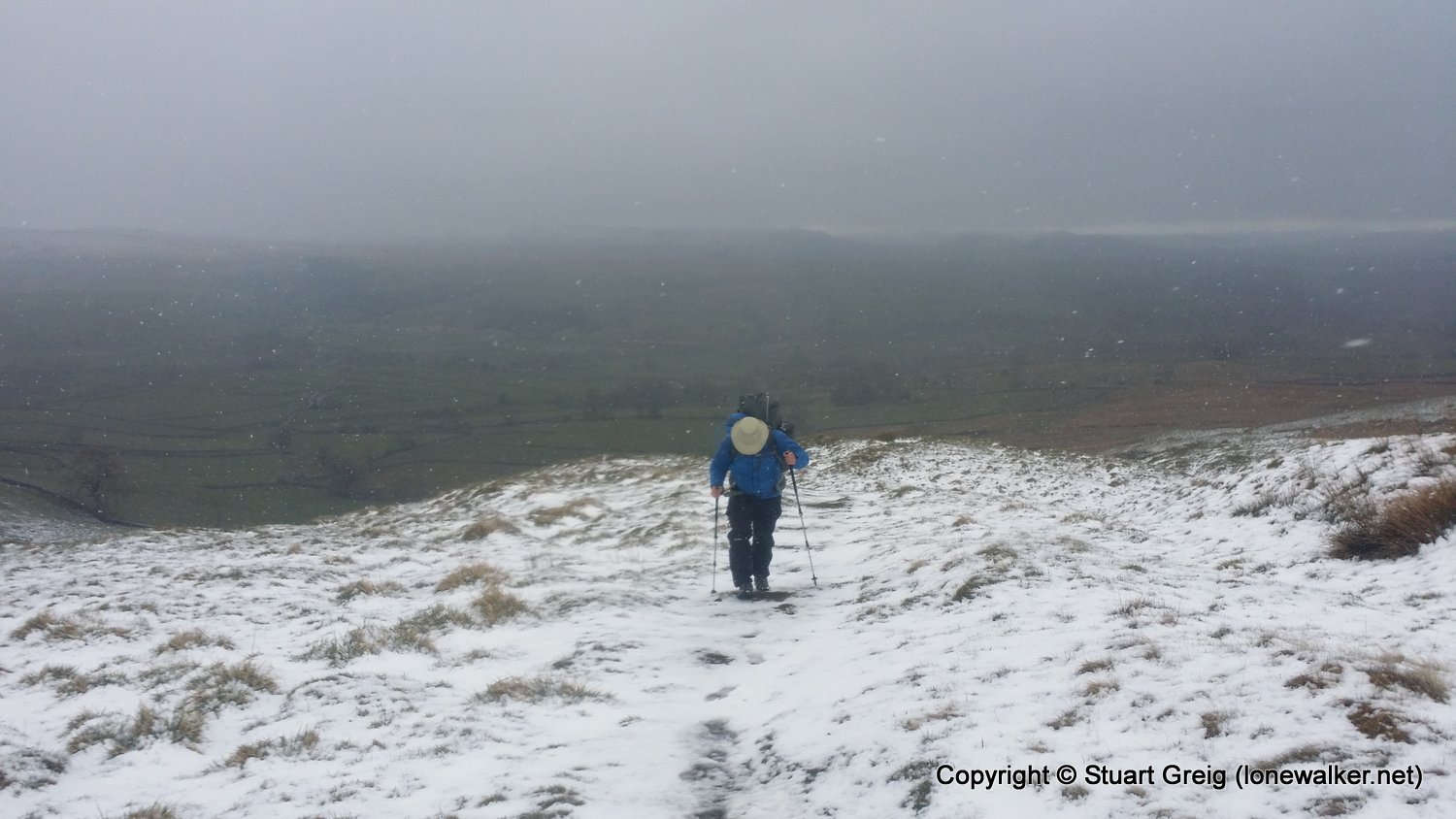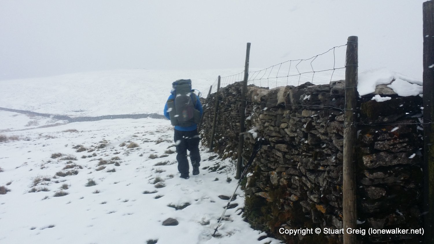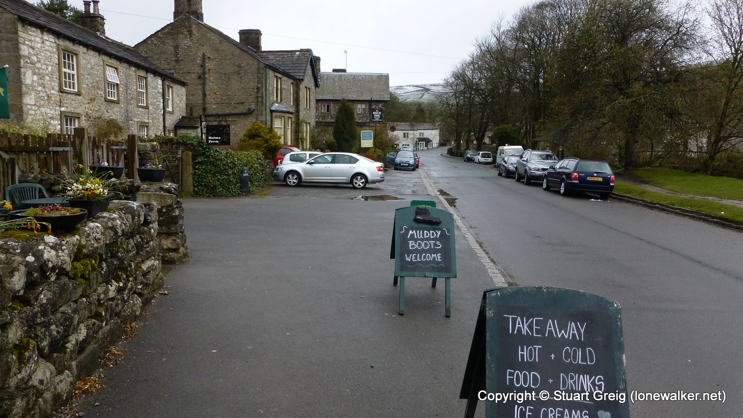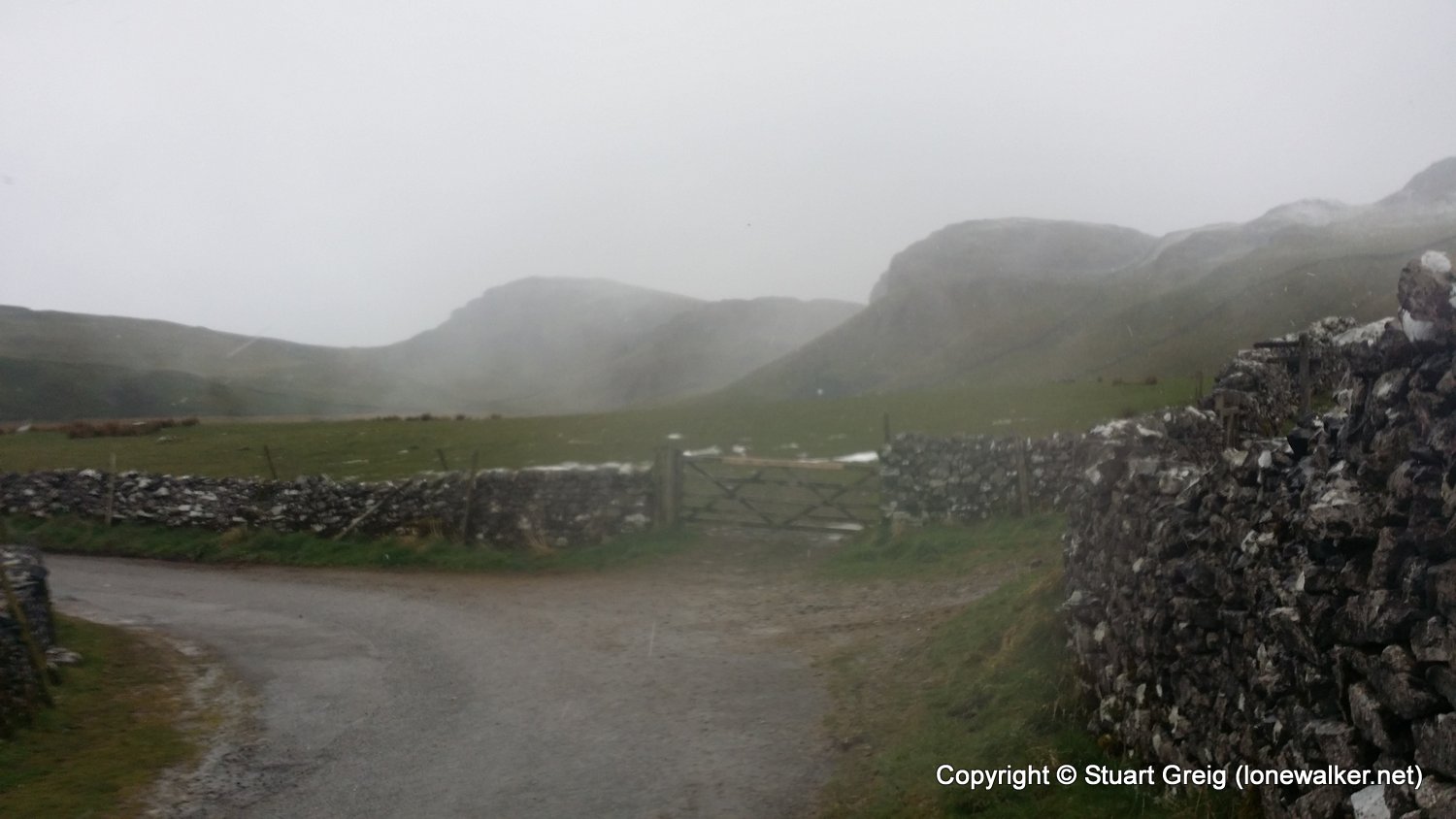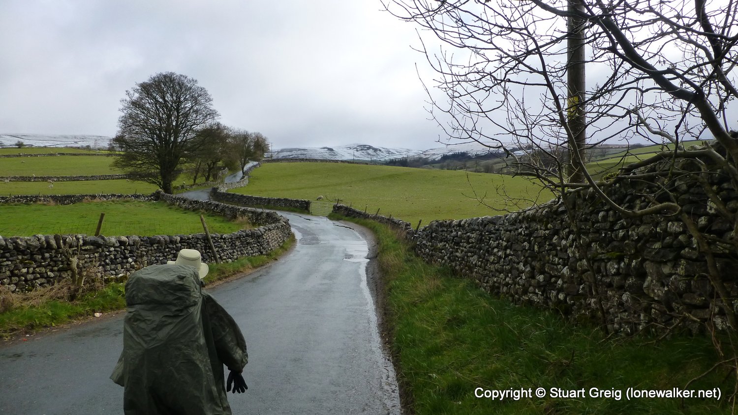 Bizarre weather; snow flurries in the valley and a blizzard on the top of Kirkby Fell, with horizontal snow and knee deep drifts in places, made for an interesting walk. Sunshine in the afternoon as we sat in the pub in Settle with the Tour de Yorkshire going on outside. Blagged a lift back to Kirkby Malham for the evening and lift back in the morning.