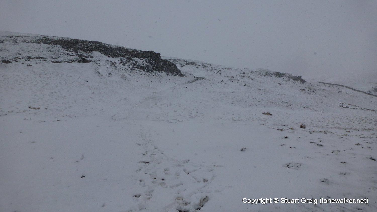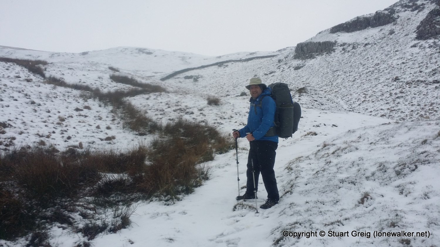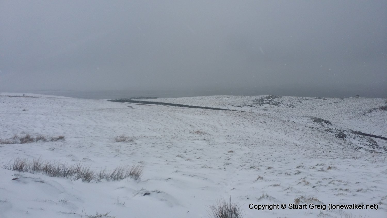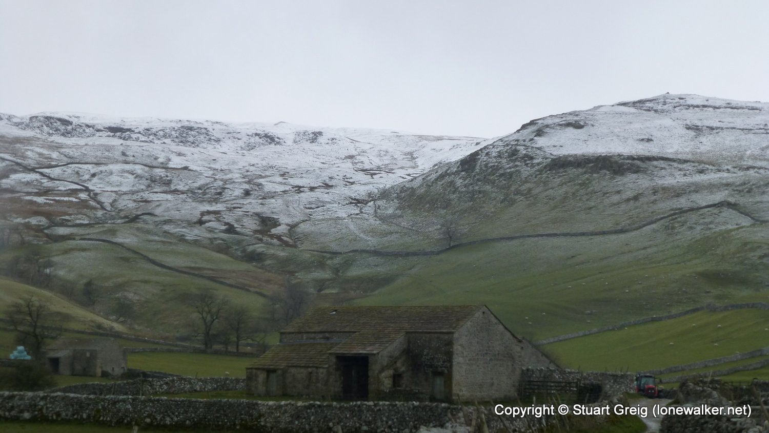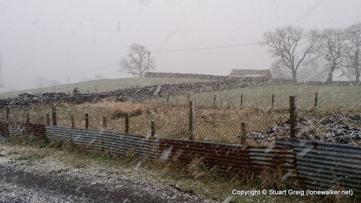 Bizarre weather; snow flurries in the valley and a blizzard on the top of Kirkby Fell, with horizontal snow and knee deep drifts in places, made for an interesting walk. Sunshine in the afternoon as we sat in the pub in Settle with the Tour de Yorkshire going on outside. Blagged a lift back to Kirkby Malham for the evening and lift back in the morning.