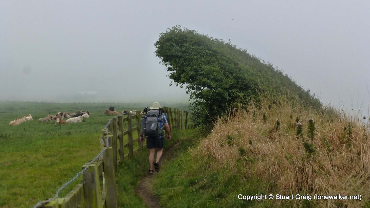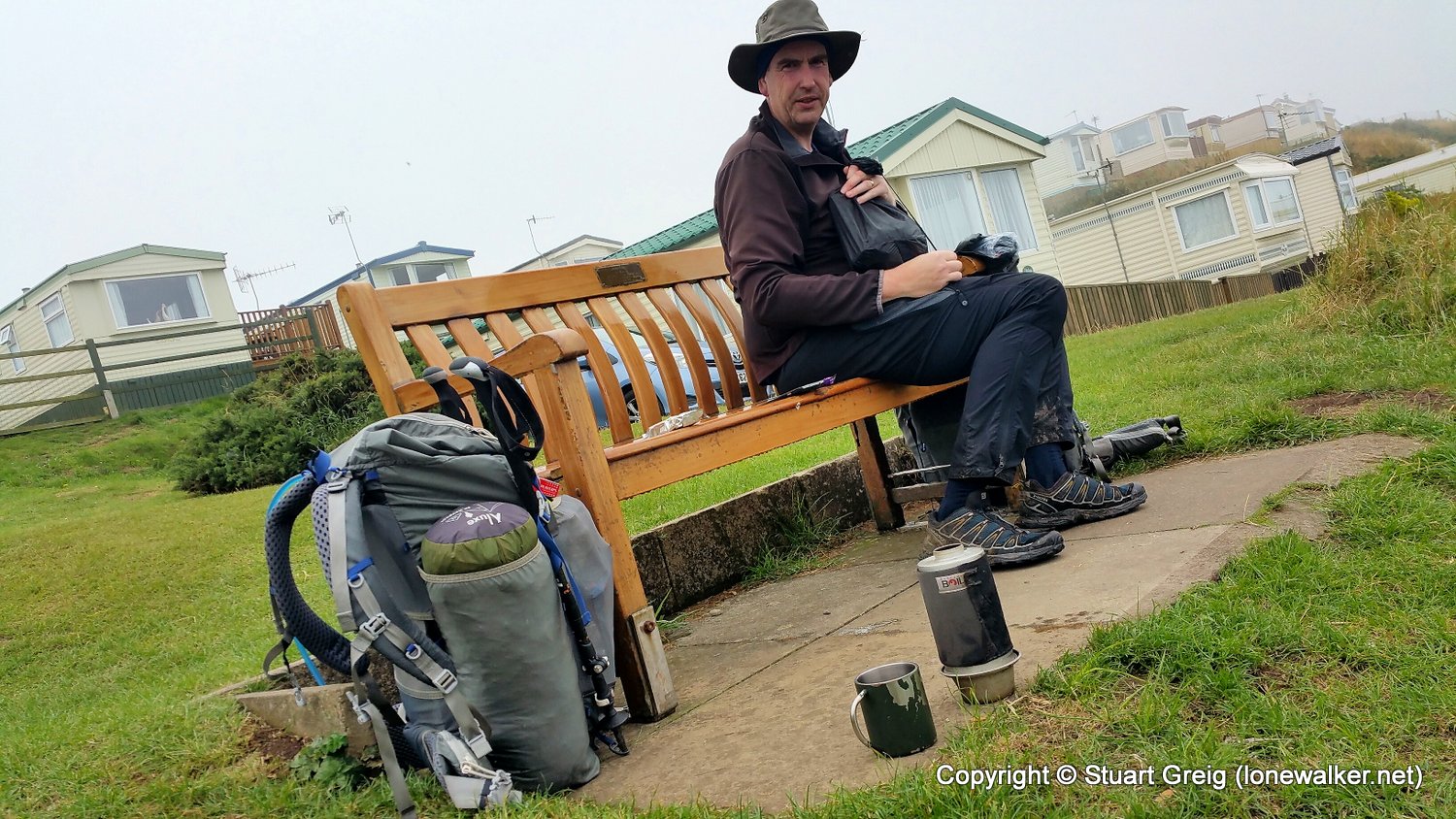 A long weekend with Chris Pilgrim, walking a section of the Cleveland Way, with the intention to wild camp where possible. We were dropped in Filey on a cloudy, grey morning with a poor forecast for later in the day. We made regular stops for brews and to enjoy the views and eventually the rain began to fall. We lost the path, walking backwards along the track as we were, we missed a diversion sign and ended up deep in a wood and then the path just ended at a huge landslip and we struggled to reach the path, visible on the other side. All this done in pouring rain. A long stop in a hotel bar in Scarborough saw us dry out, only for the rain to start again a few minutes before we stopped to camp. A cheeky path-side camp, pitching late saw an interesting end to a great day.