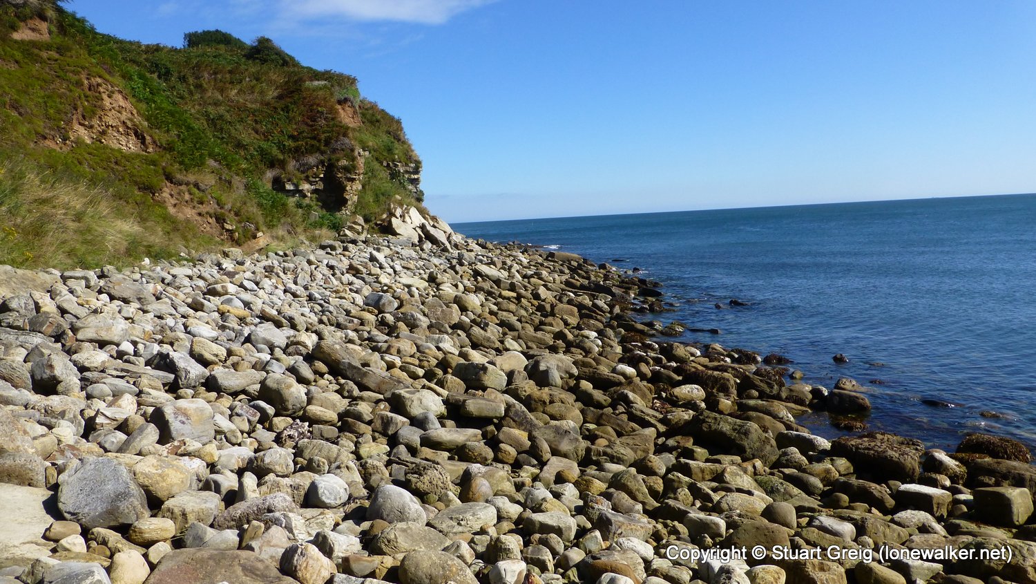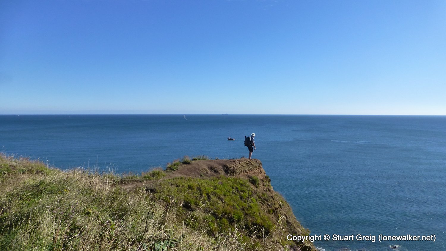 A much nicer day today, warm sunshine, blue skies and with a cooling breeze. A late start considering how close to the path we were, but not molested by any landowner. Taking regular stops again to take advantage of the weather and to ensure we didn't arrive at the end too early. Great day in the sun and the sea to our right. An evening meal and a couple of pints at the top of the hill in RHB and then an evening stroll in the late warmth to find another path-side camp on North Point, the other side of RHB.